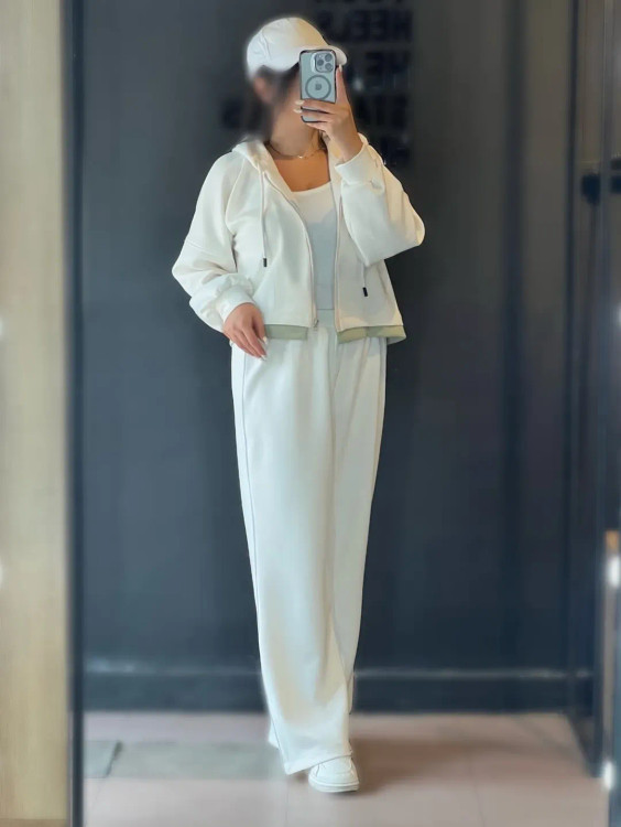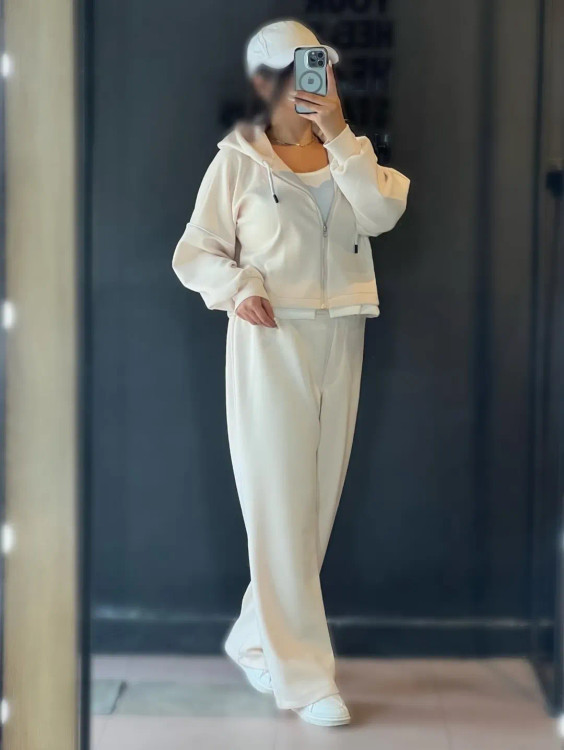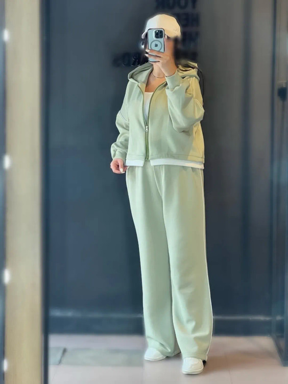 ست اویشو هودی کراپ با شلوار مناسب سایز ۳۶ تا ۴۶. قد بالاتنه ۵۰ سانتیمتر و قد شلوار ۱۰۵ سانتیمتر. دور سینة ۱۲۰ سانتیمتر و دور کمر در حالت عادی ۶۰ سانتیمتر و کشیده ۱۱۰ سانتیمتر.
